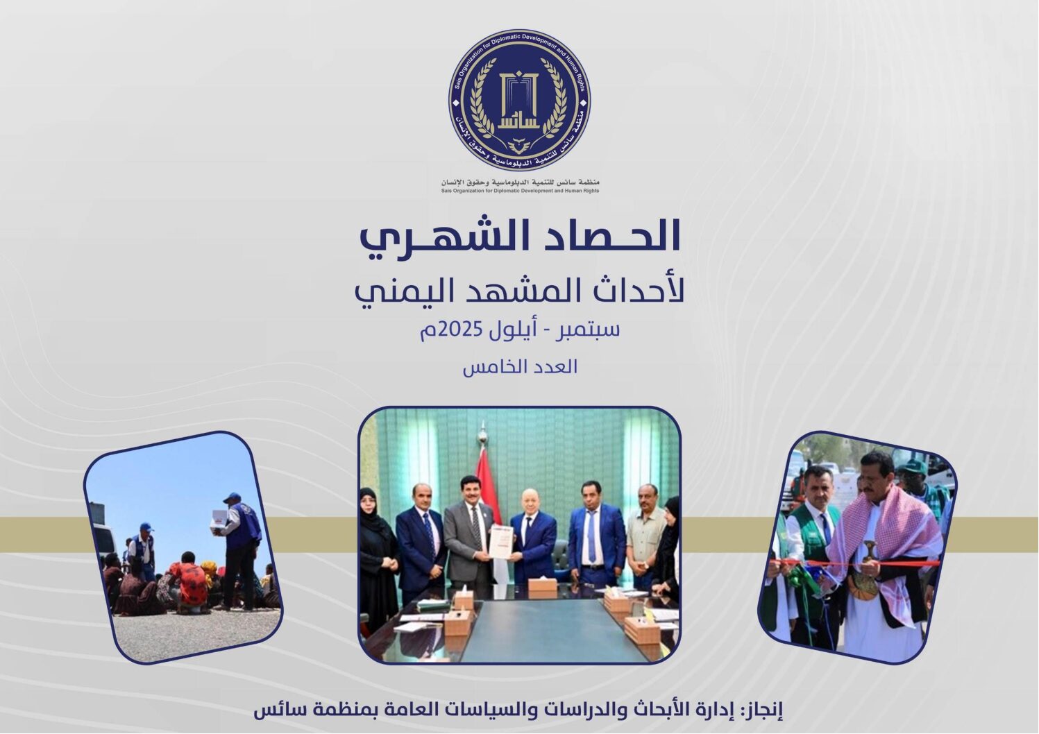 منظمة سائس تصدر الحصاد الشهري والذي ترصد من خلاله أبرز ما شهدته الجمهورية اليمنية من تطورات سياسية واقتصادية وعسكرية وحقوقية خلال شهر سبتمبر 2025م.للاطلاع على الحصاد الشهري من خلال الرابط التالي