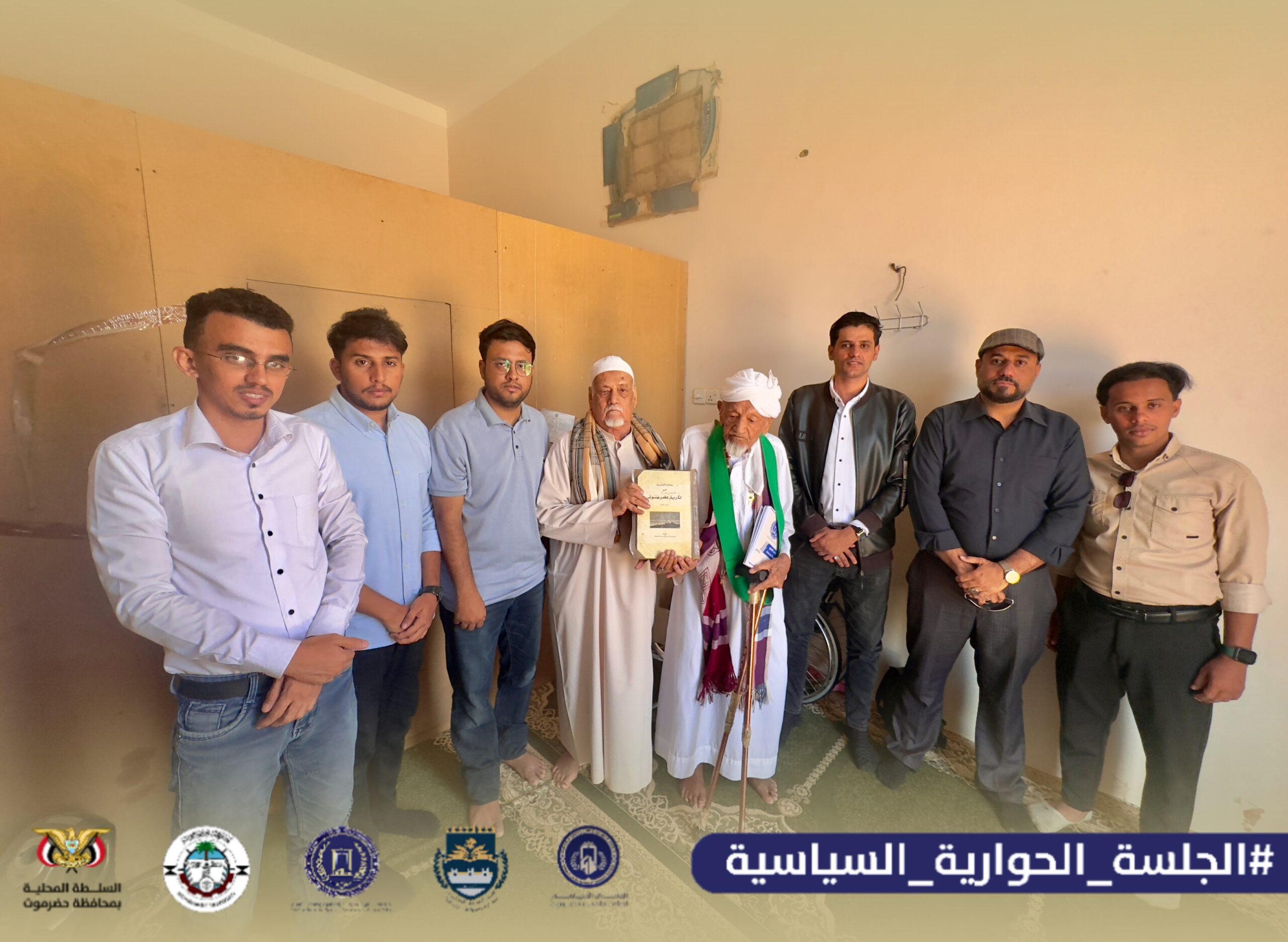 وخلال اللقاء قدّم المعمّر جعفر السقاف نبذة تاريخية عن حضرموت، مستعرضاً أبرز المراحل التي مرت بها المحافظة سياسياً وثقافياً واجتماعياً ، وتحدث عن مستقبلها السياسي في ظل المتغيرات الراهنة، مشيداً بدور الشباب ومنظمات المجتمع المدني في تعزيز الوعي الوطني وخدمة قضايا الإنسان والتنمية.