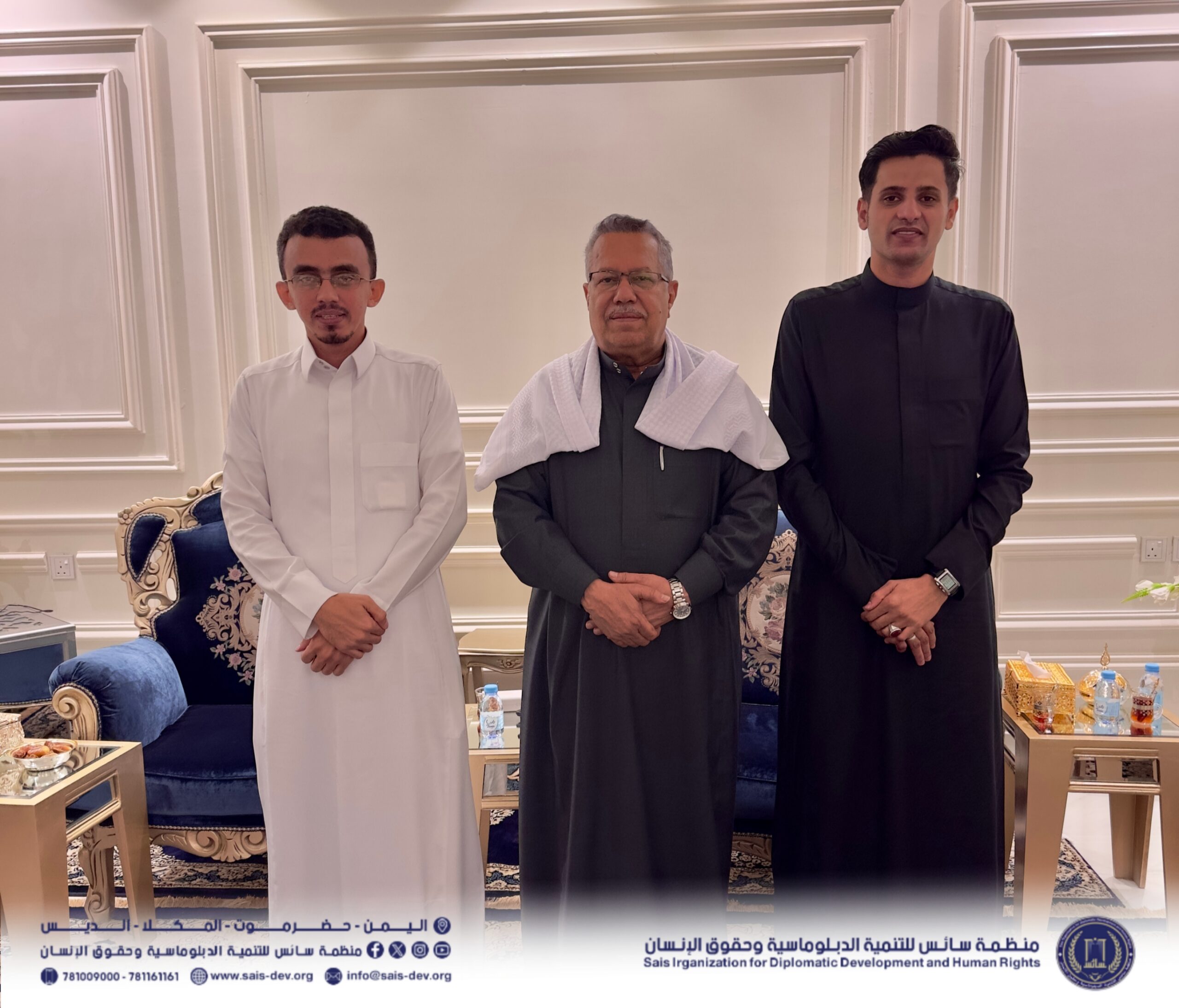 التقت منظمة سائس للتنمية الدبلوماسية وحقوق الإنسان بدولة الدكتور أحمد عبيد بن دغر، رئيس مجلس الشورى اليمني، حيث قدّم المهندس راشد عمر باصريح، المدير التنفيذي للمنظمة، عرضًا موجزًا عن أنشطة المنظمة في مجالات التنمية السياسية والأبحاث والدراسات.
